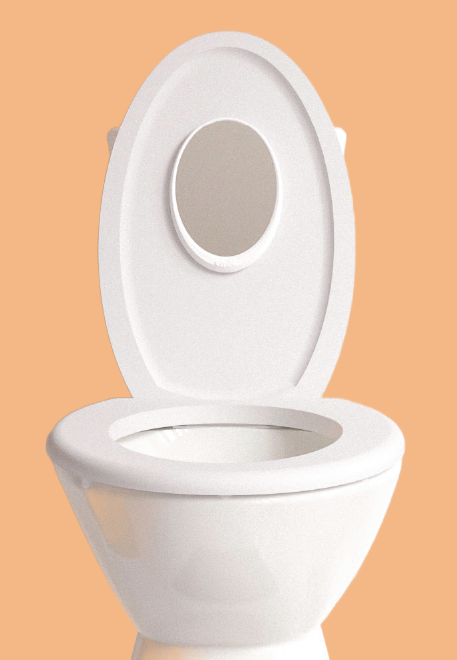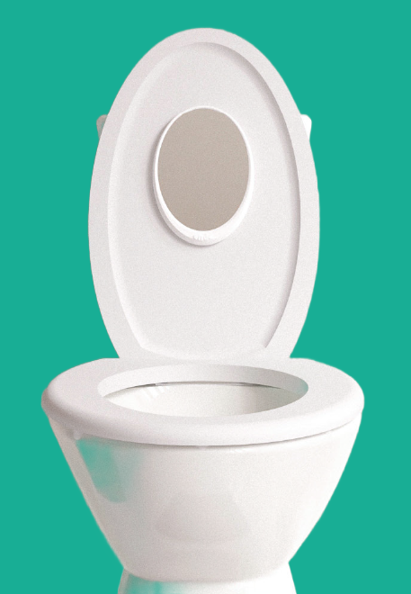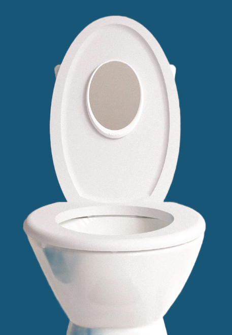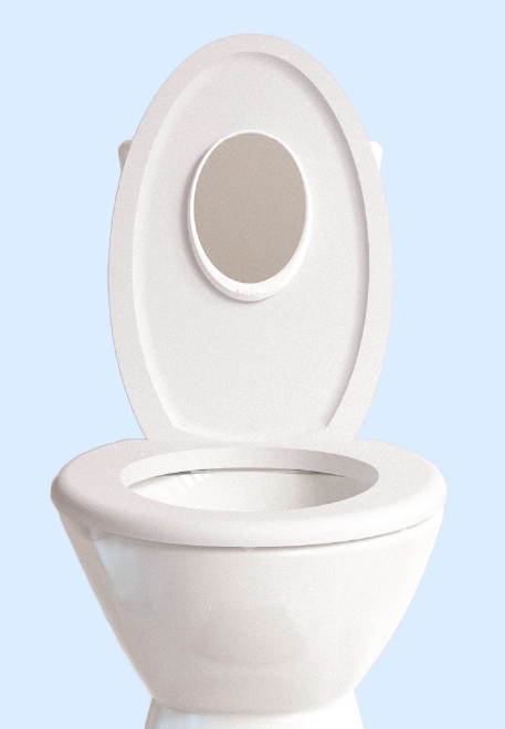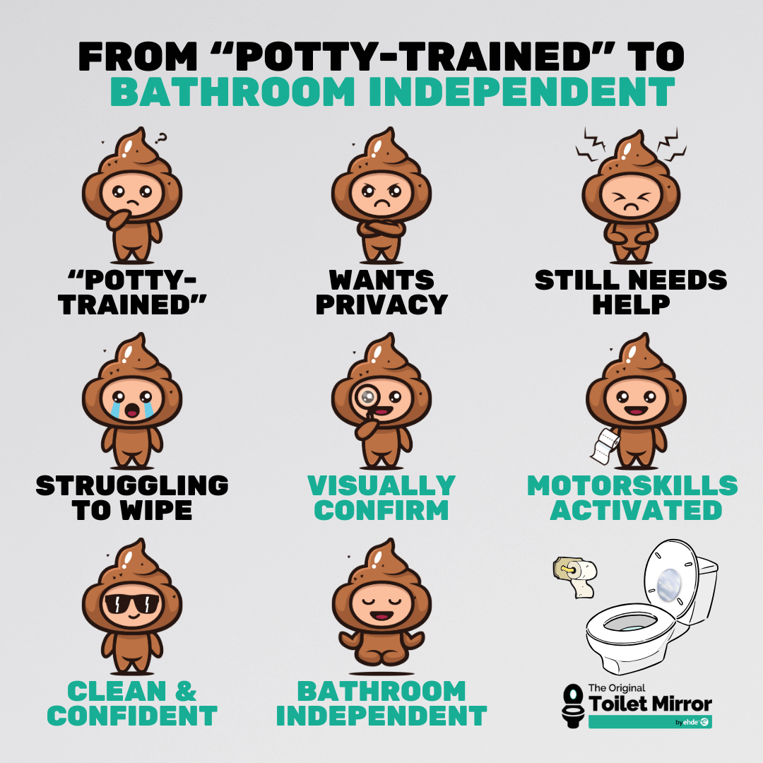 We asked ourselves, when does real bathroom independence begin? He didn’t want us in there any more than we wanted to be there. That’s when the lightbulb moment hit—what if we put a mirror on the back of the toilet lid?